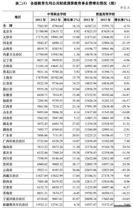 (3)全国普通高中为8448.14元,比上年的7775.94元增长8.64%。增长最快的是甘肃省(24.5%)。
