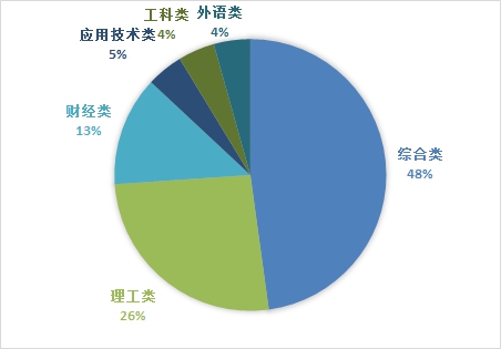 广东民办本科高校共有23所,其中11所为综合类院校,约占48%,理工类有6所,财经类有3所。师资力量对于民办高校的办学质量和发展前景具有举足轻重的作用。根据可获得的数据,拥有博士和硕士学位教师数量占比80%以上的学校共有6所。