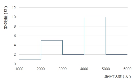 从毕业生人数的分布情况看,毕业生人数以4000—5000人居多,毕业生人数均在1000人以上,且1000-2000人的学校仅有一所。