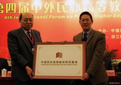 浙江树人大学原校长朱玉为中国民办高等教育研究院授牌