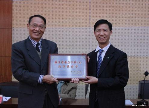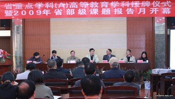 日前,省重点学科(A)高等教育学学科授牌仪式暨2009年省部级课题报告月开幕式在我校顺利举行。会议由科研处朱红缨副处长主持。浙江省社会科学联合会副主席邵清、浙江省社会科学规划办公室副主任王三炼、朱玉校长以及全体校领导参加了会议。